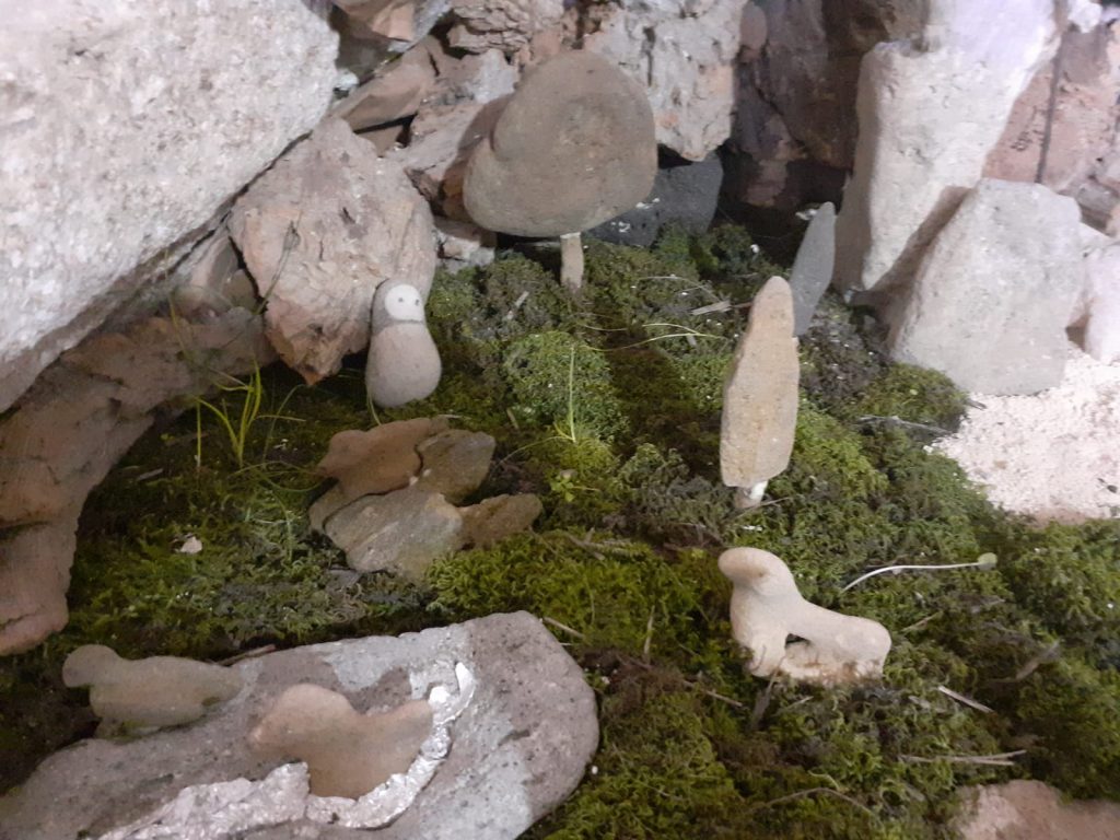 Dapprima ha trovato i due sassi che gli hanno ricordato la Madonna e San Giuseppe poi altri sassolini dai contorni che richiamavano degli animaletti.