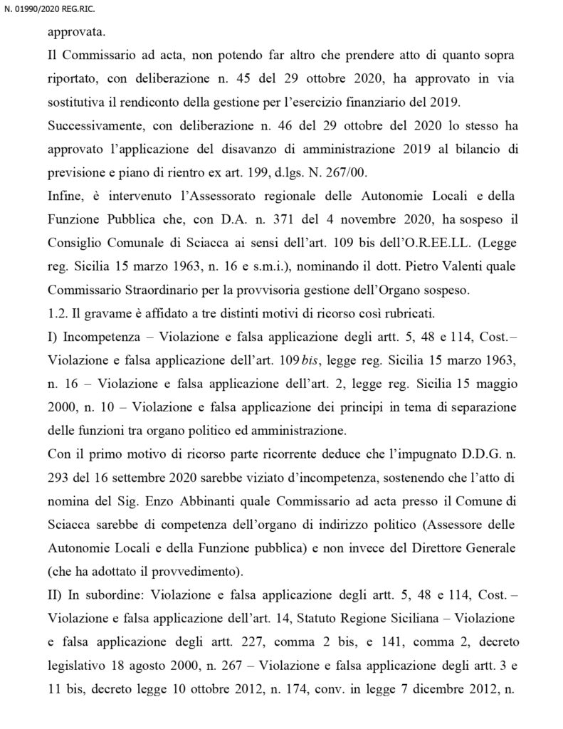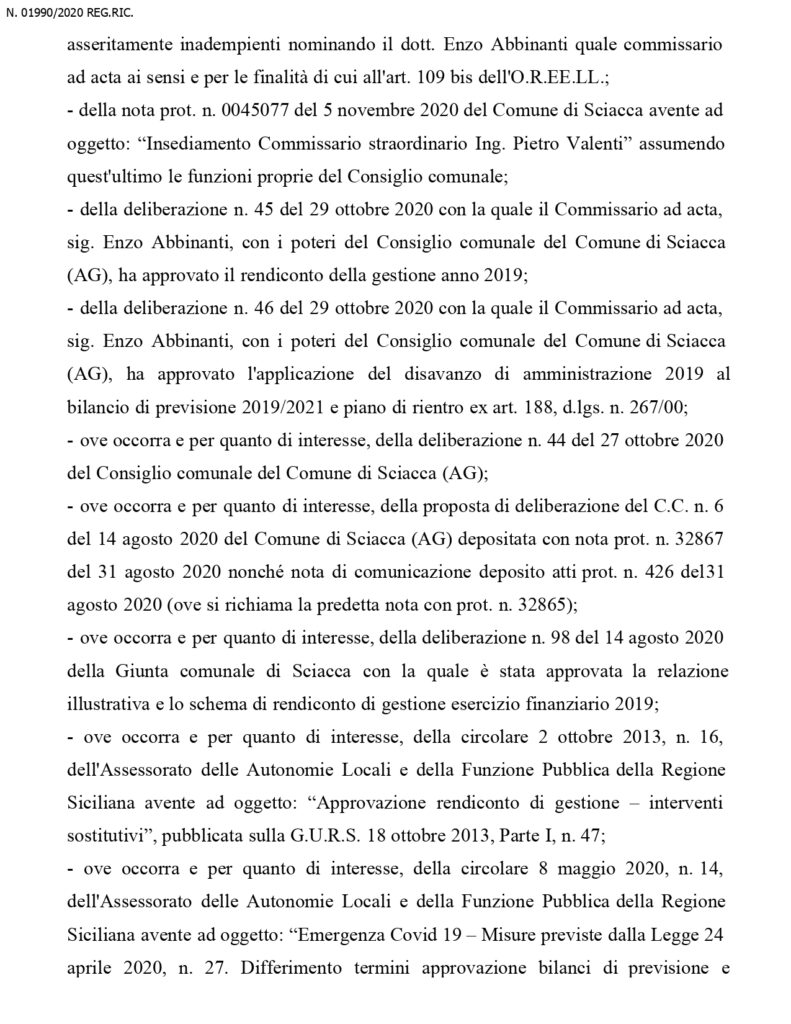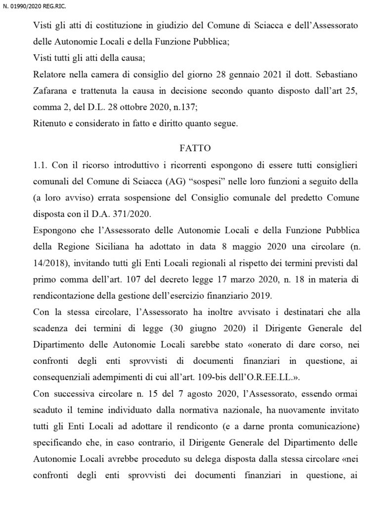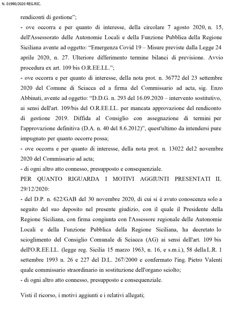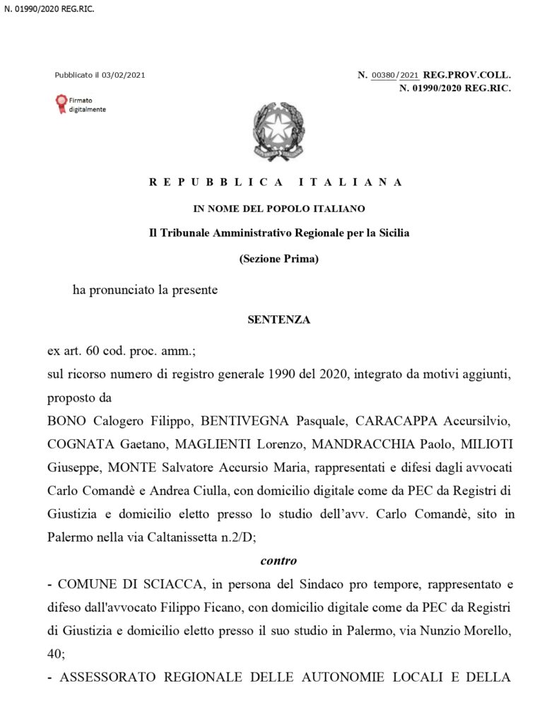 Dal momento dello scioglimento dell’organo collegiale, e’ stato nominato un commissario straordinario che a questo punto, restera’ in carica fino al maggio 2022, ossia fino al momento del rinnovo dell’amministrazione. Questa la sentenza in integrale del Tar: