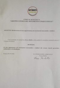 La consigliera comunale del M5S, fa da apripista alla legge “scova-massoni”, approvata appena 48 ore fa all’Ars tra l’entusiasmo di Claudio Fava, presidente della Commissione antimafia che ha proposto il disegno di legge che non senza qualche difficoltà, ha, alla fine, trovato il beneplacito del voto favorevole dell’aula.