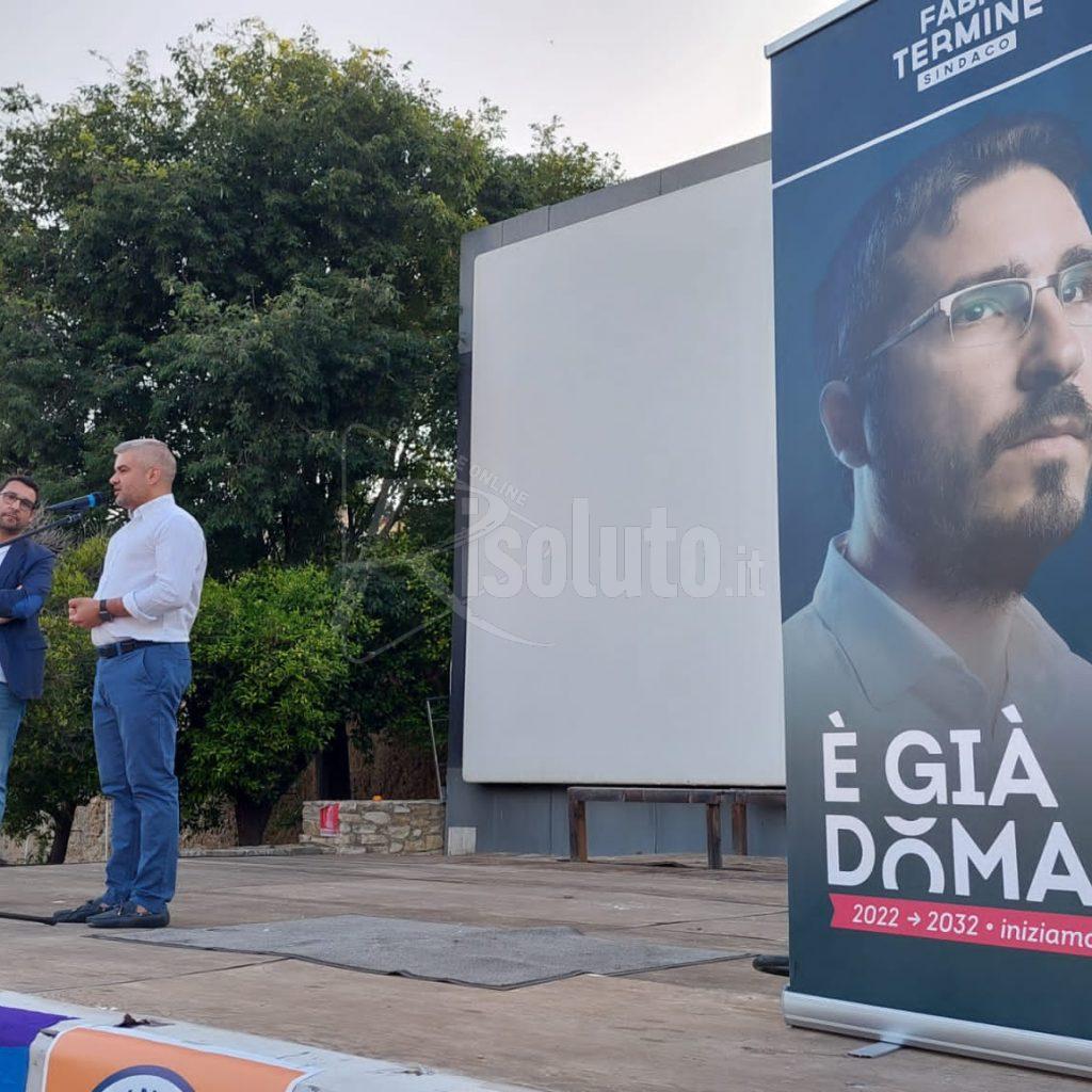 Ha chiuso la serata il candidato a sindaco Fabio Termine che poi ha effettuato poco dopo il suo primo comizio di questa campagna elettorale nella piazza di San Michele.