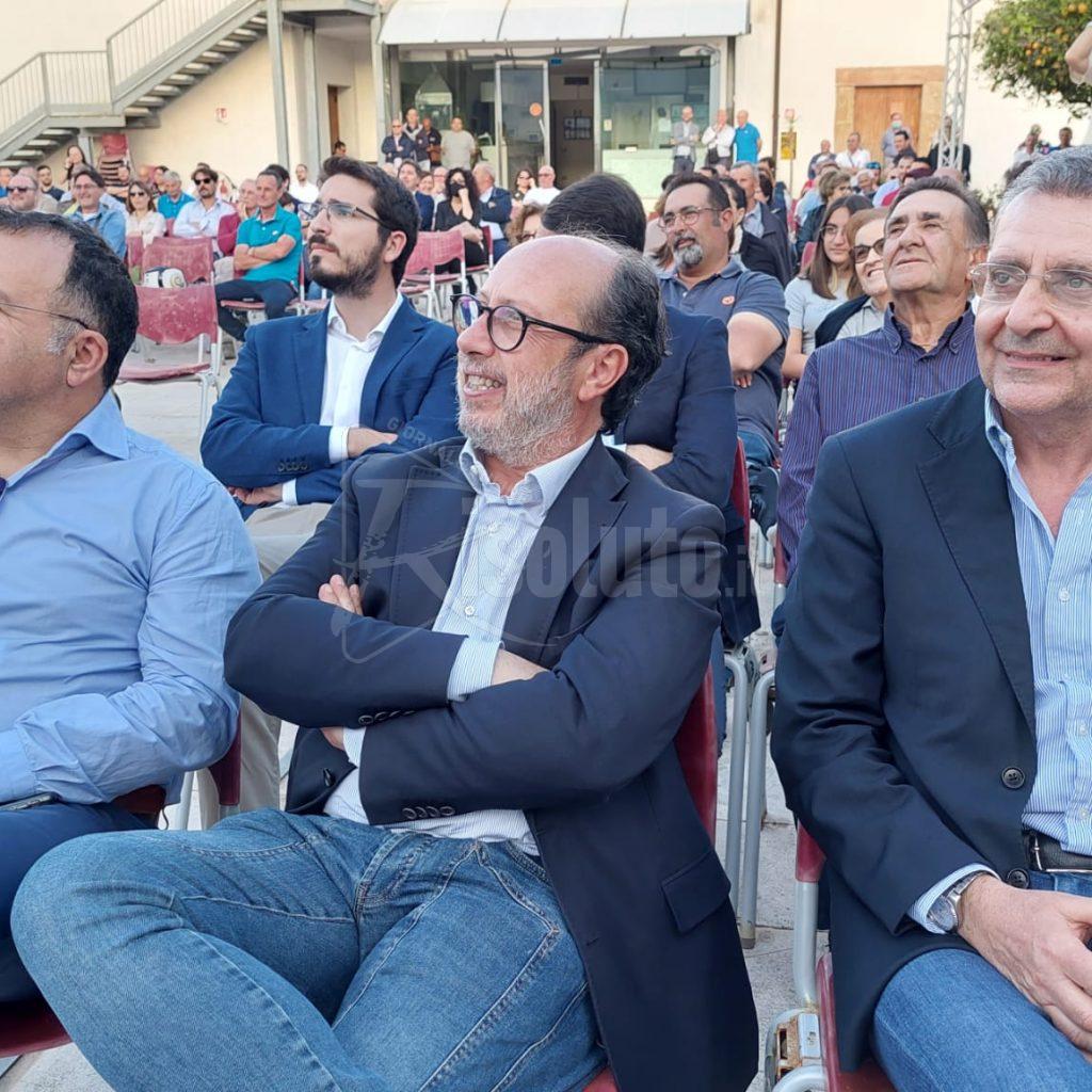 In prima fila, anche i tre assessori della Giunta Valenti che saranno candidati al consiglio: Michele Bacchi, Fabio Leonte e Roberto Lo Cicero.