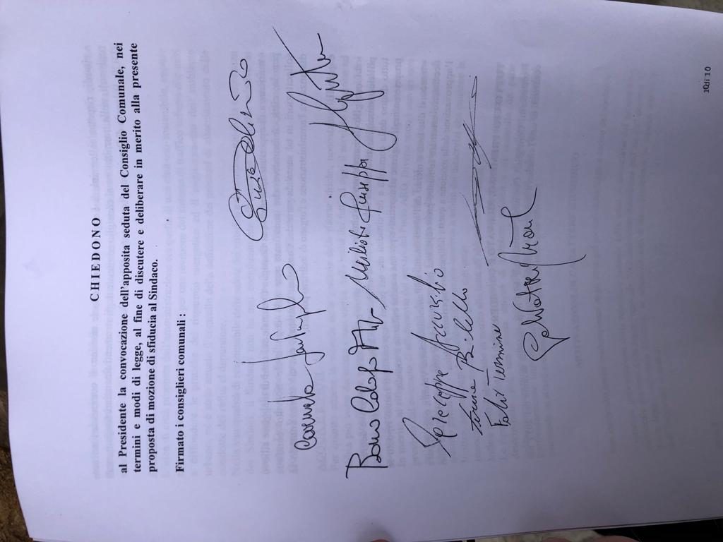Bentivegna non ha firmato e ha ribadito che in consiglio voterà favorevolmente solo se il suo sarà il quindicesimo voto. Curreri e’ fuori sede, gli era stata chiesta una dichiarazione favorevole alla mozione da parte dei consiglieri che però non e’ arrivata. Hanno presentato la mozione Milioti, Caracappa, Monte, Bilello, Termine, Cognata, Bono, Santangelo, Maglienti e Diliberto. Il percorso in consiglio si presenta difficile per il fronte favorevole alla mozione perché i voti necessari per l’approvazione potrebbe garantirli solo Italia Viva che, però, un mese fa, con il senatore Nuccio Cusumano, ha dichiarato cose diverse. Adesso il presidente del consiglio comunale ha un mese di tempo per portare la mozione in consiglio.