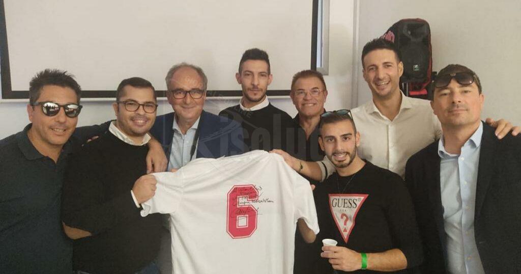 Baresi e’ stato accolto dal presidente del club, Pasqualino Borsellino, e dai componenti del direttivo. Dopo Ribera si è trasferito ad Agrigento. Nella foto, Baresi con l’ex consigliere comunale Fabio D’Azzo.